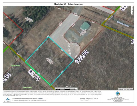 La municipalité d’Aston-Jonction détient un terrain industriel qui est disponible pour la vente sur la rue Blais. Ce terrain est affecté à la Zone i-03. Le terrain est d’une superficie de 4895.2 m² et ne possède aucun service.