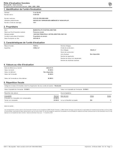 L’évaluation municipal de ce terrain est de 35 500$, ce qui représente le prix de vente de la municipalité. (Prix évalué par un évaluateur indépendant)
